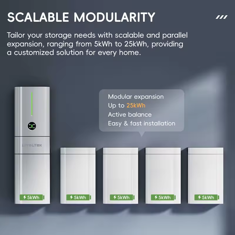 Modularitate: Capacitate scalabilă de la 5 kWh până la 25 kWh prin simpla adăugare a modulelor.